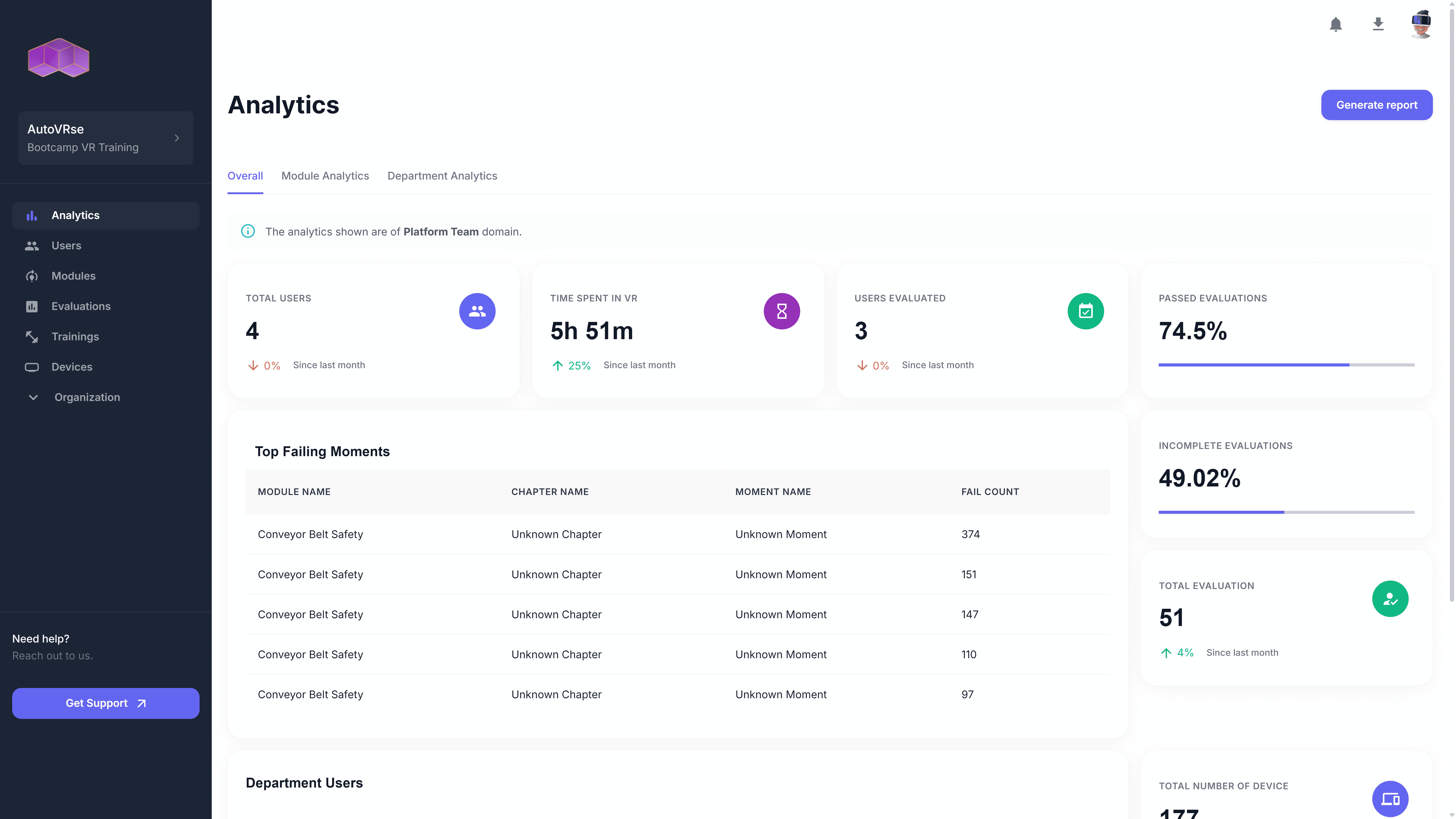 Access to analytics and LMS dashboard through VRseBuilder Pulse