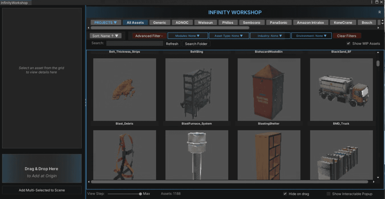 Provides access to a built-in asset library while allowing creators to upload custom 3D models or request additional assets as needed.